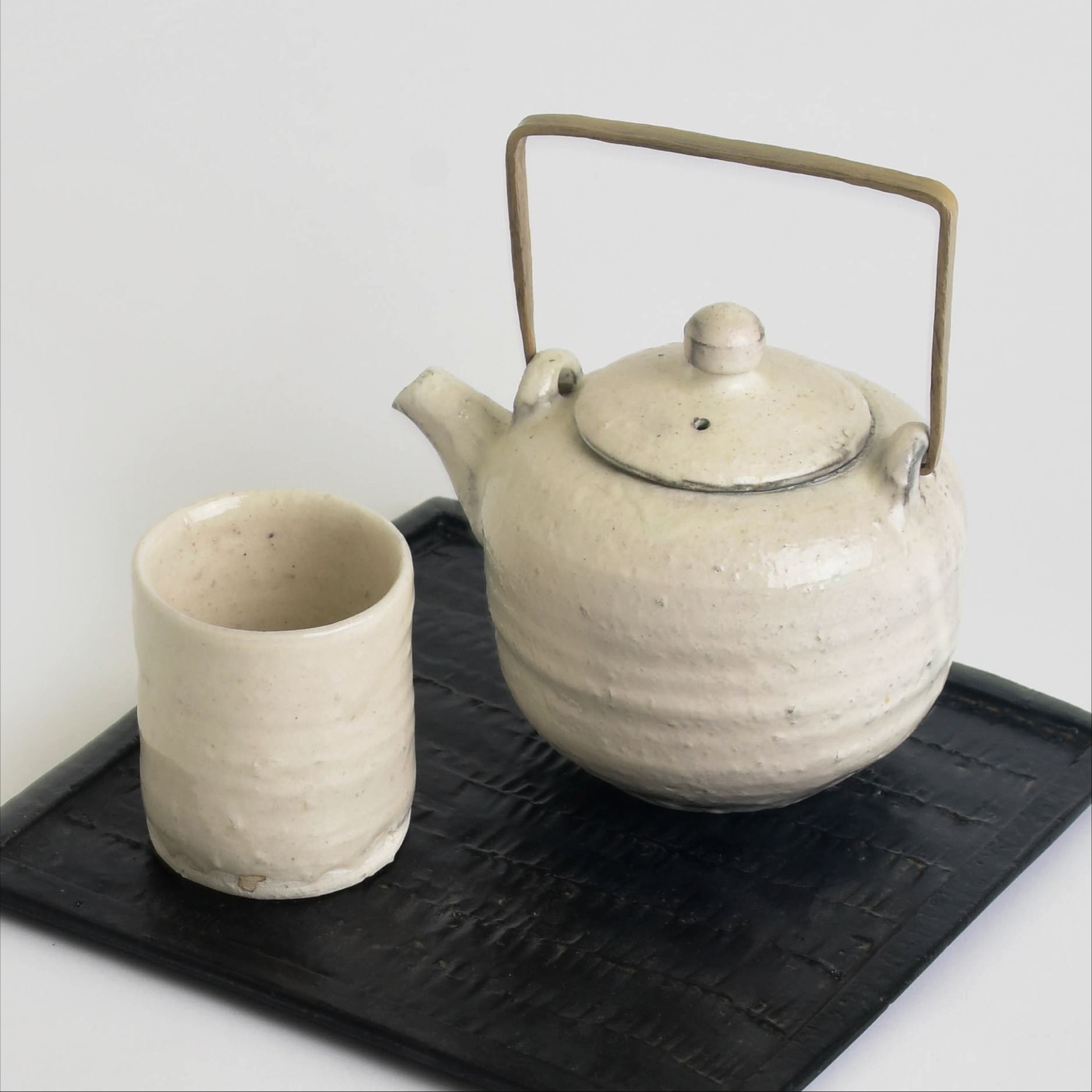 미니멀하면서도 작가의 내공이 깃든 도자기에는 옻칠을 한 윗 손잡이가 매력을 더해줍니다.