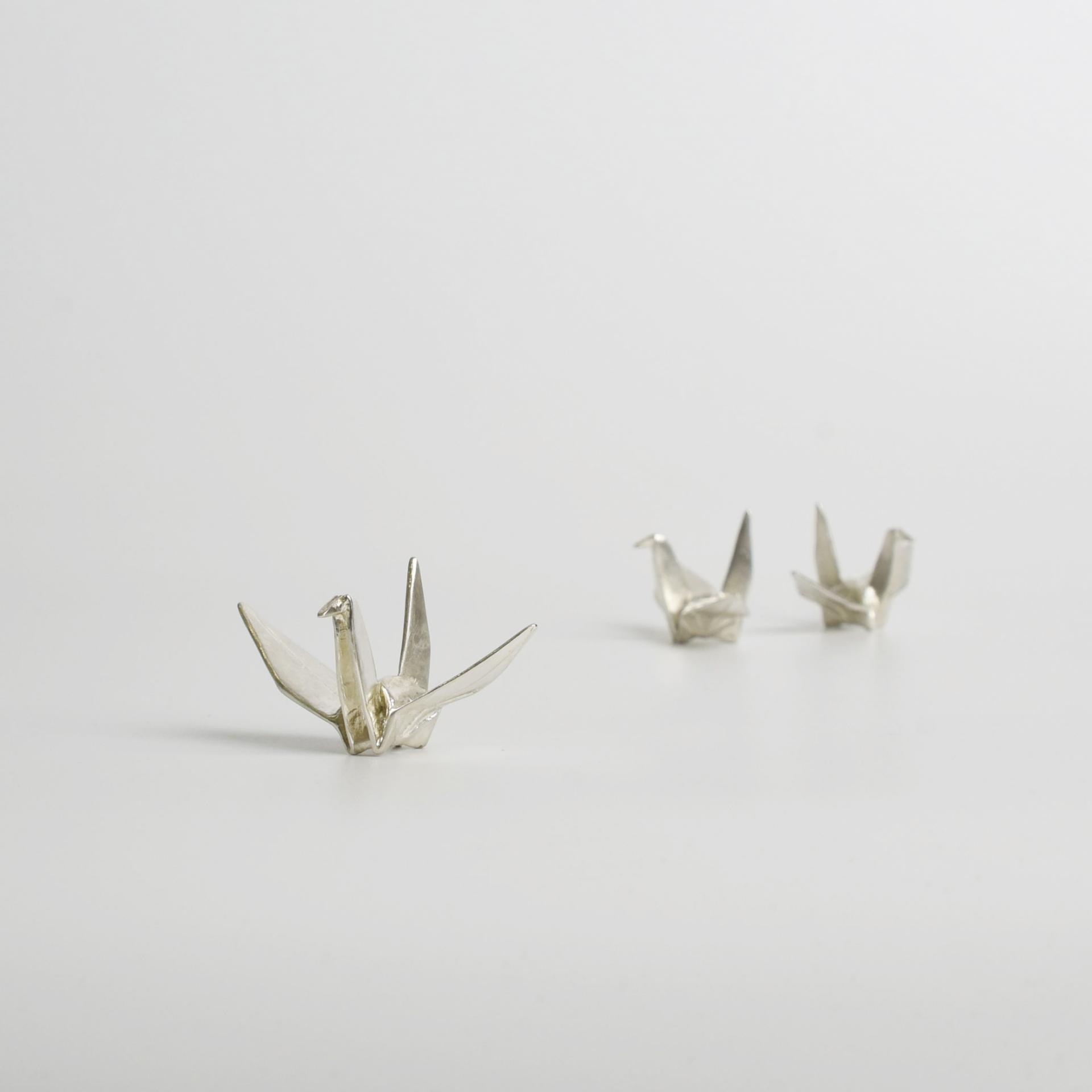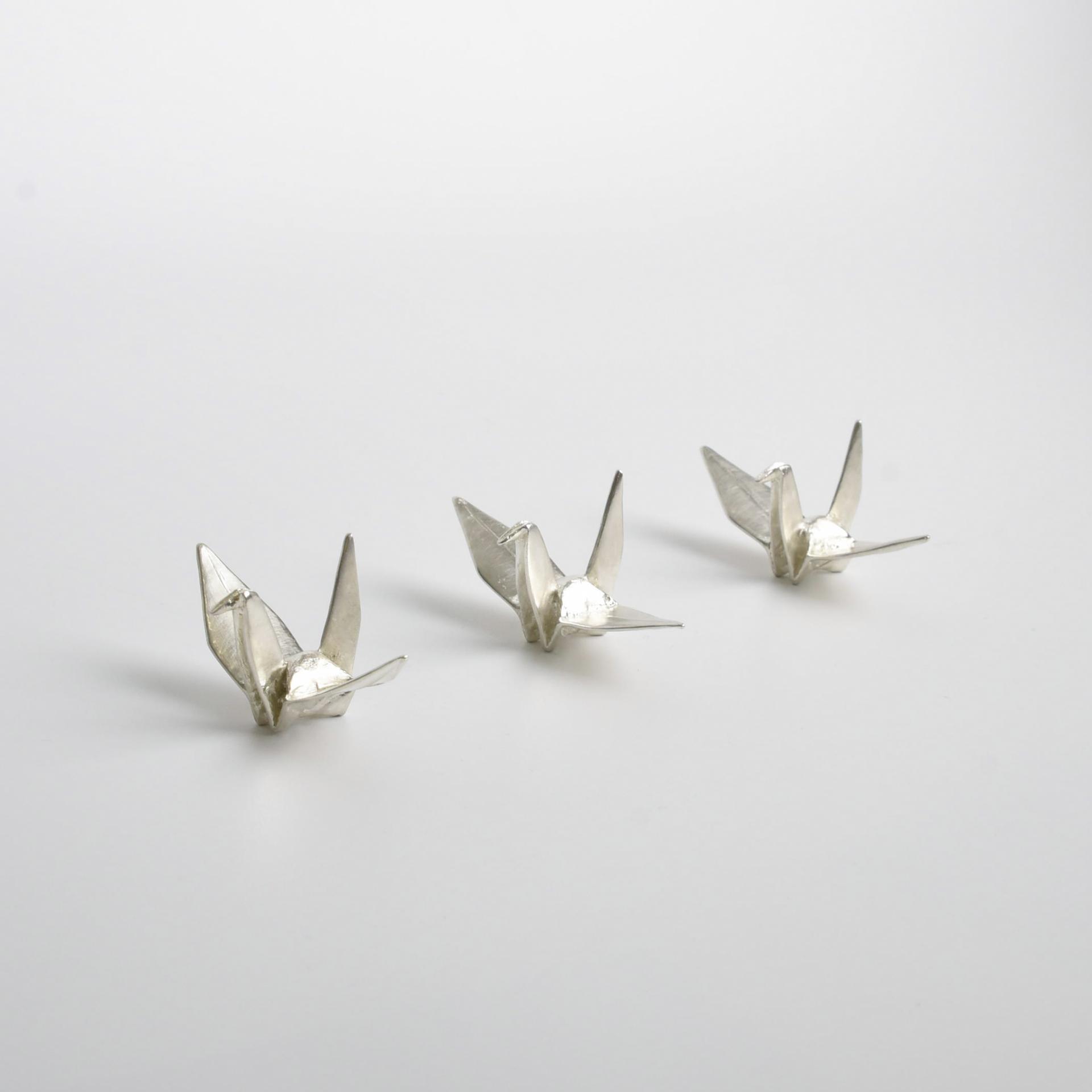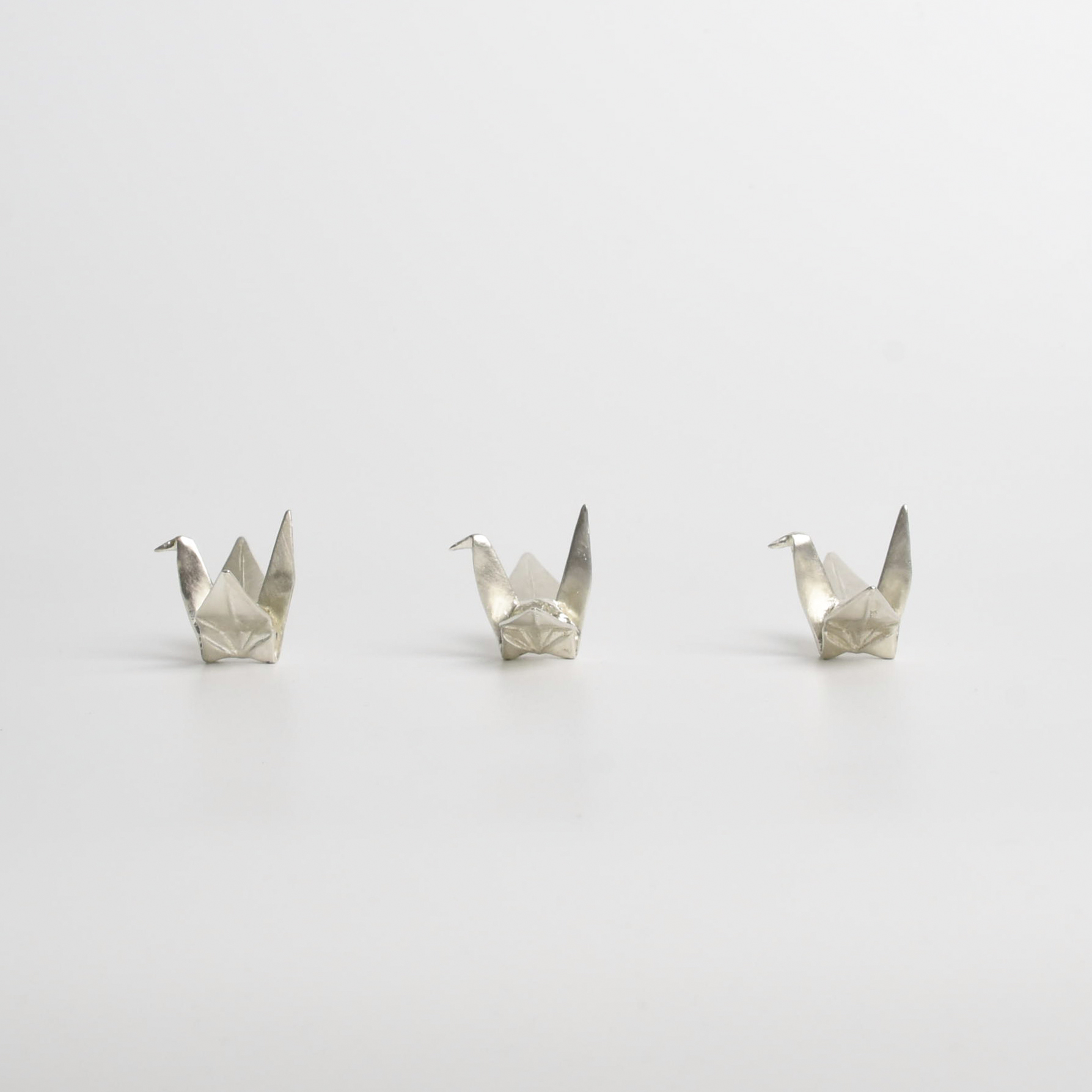 은으로 제작한 종이학 모양의 오브제 입니다.