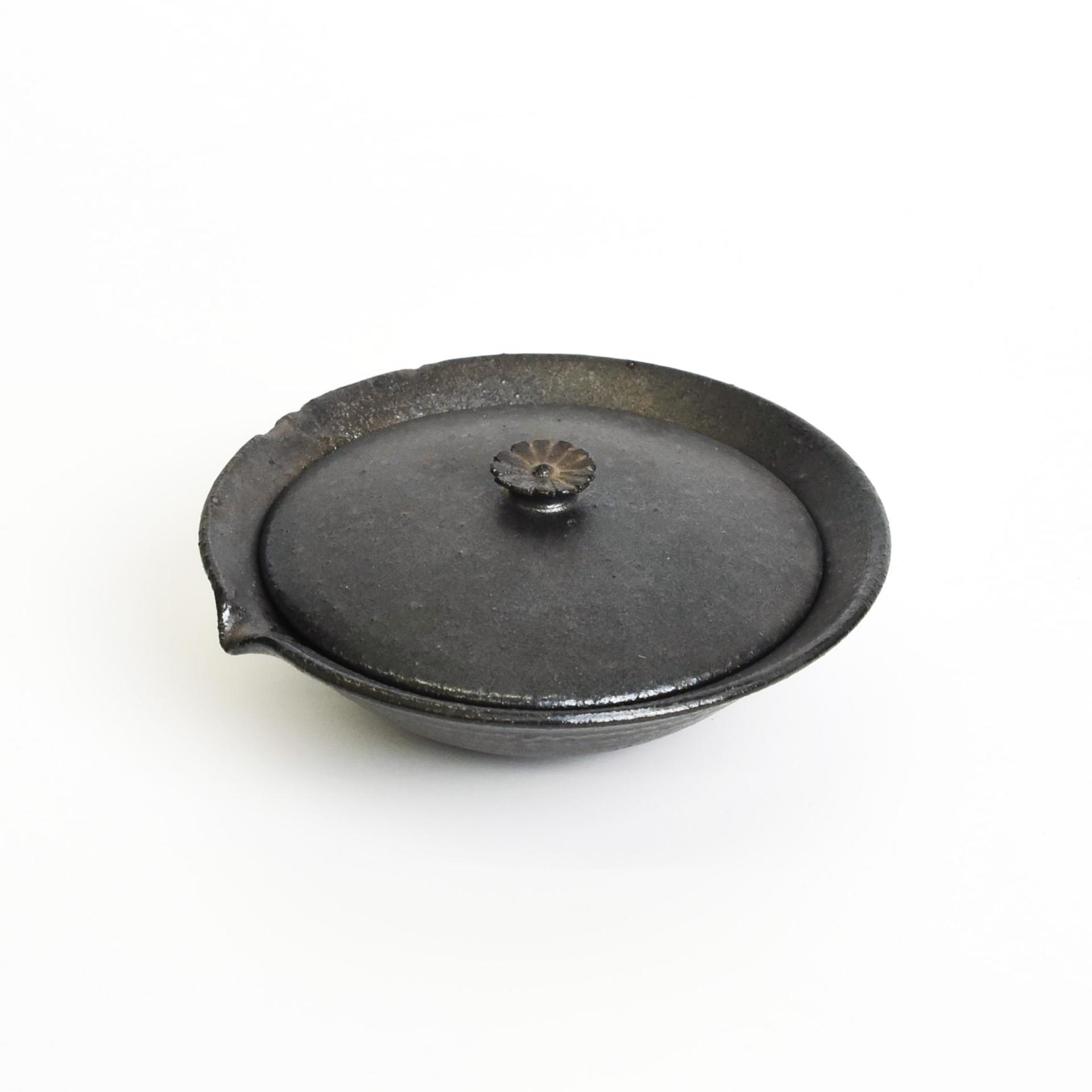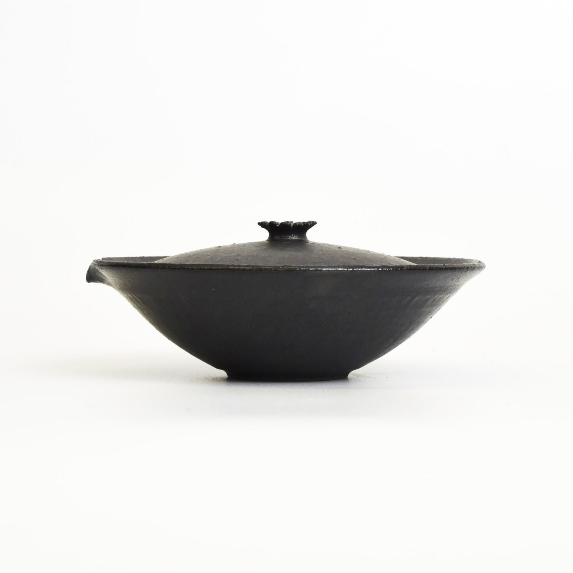 사예 흑유 개완은 낮고 넓은 형태로 차를 우려내는 시간을 더욱 여유롭고 편안하게 만들어 줍니다.