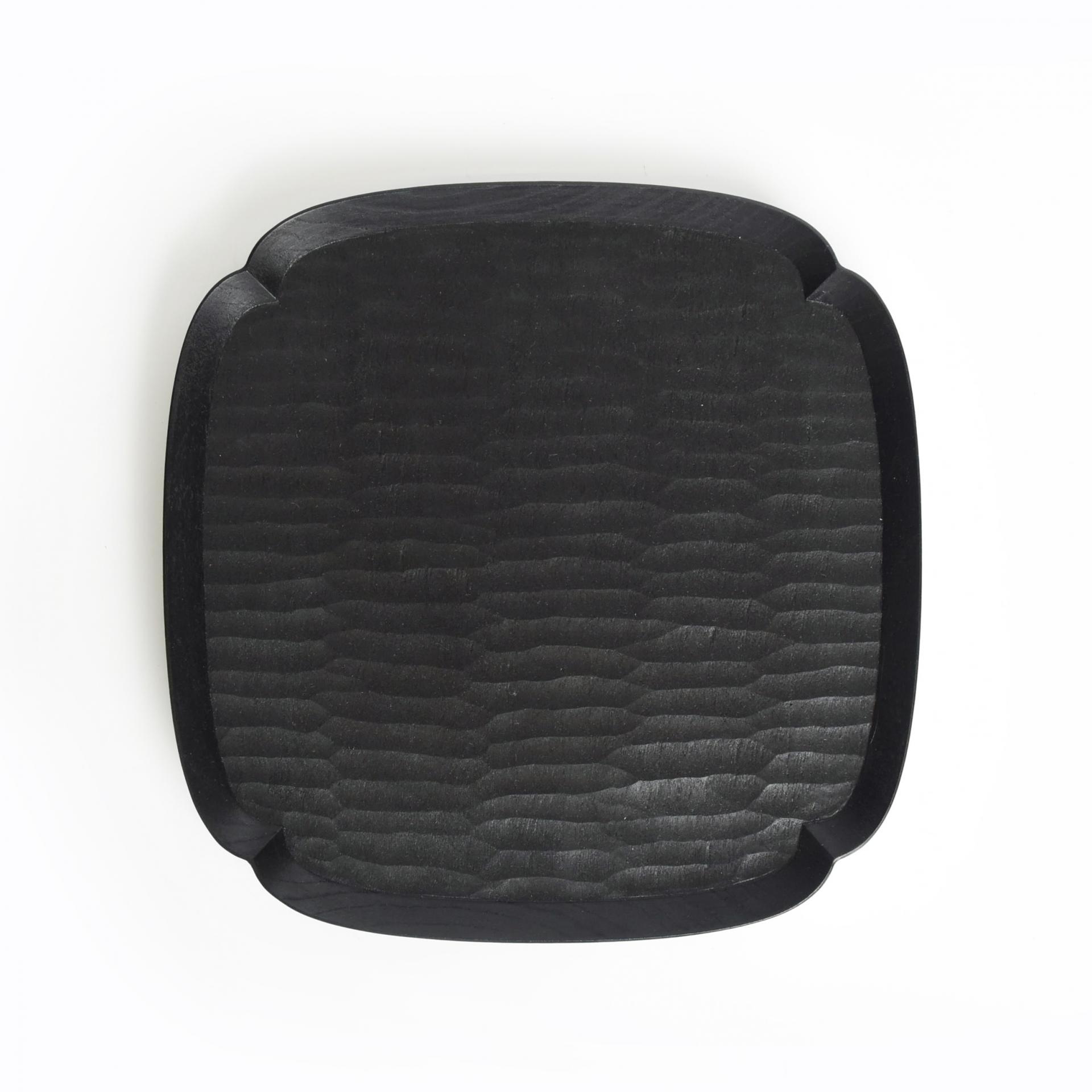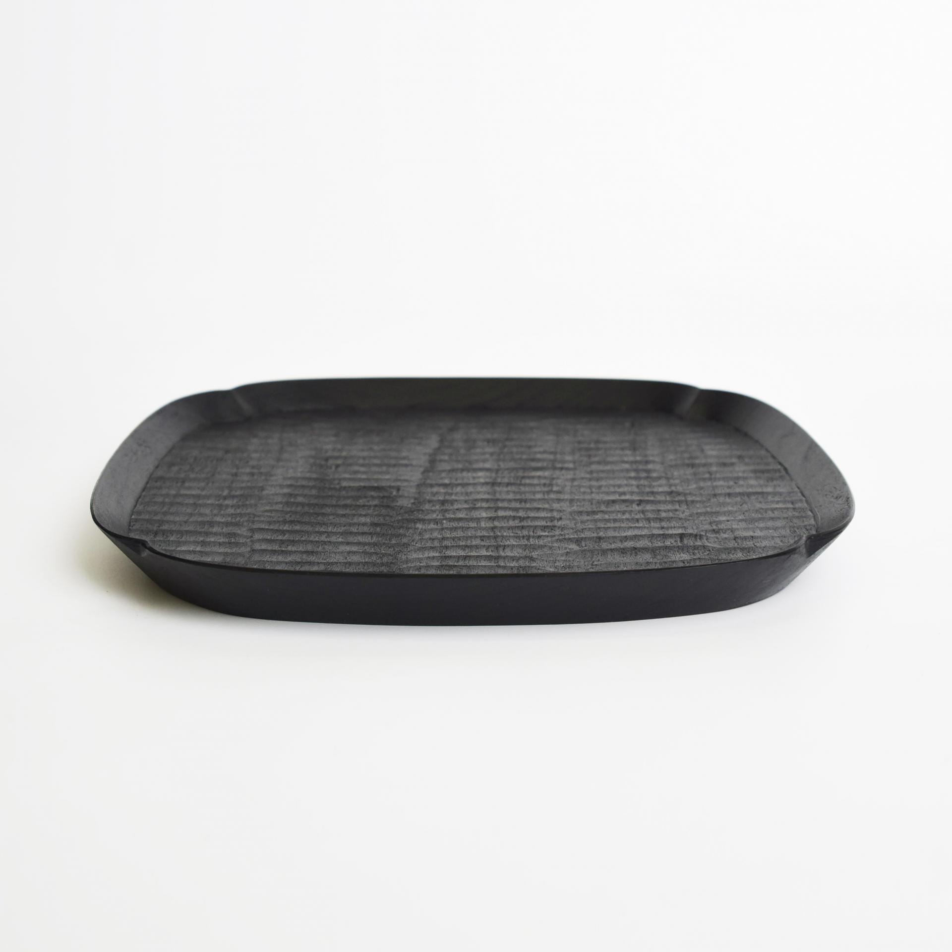 체리나무를 깎고 천연 옻을 칠해 마감한 작품입니다. 우드카빙 기법을 이용해 트레이 표면의 자연스러운 텍스처가 돋보입니다.