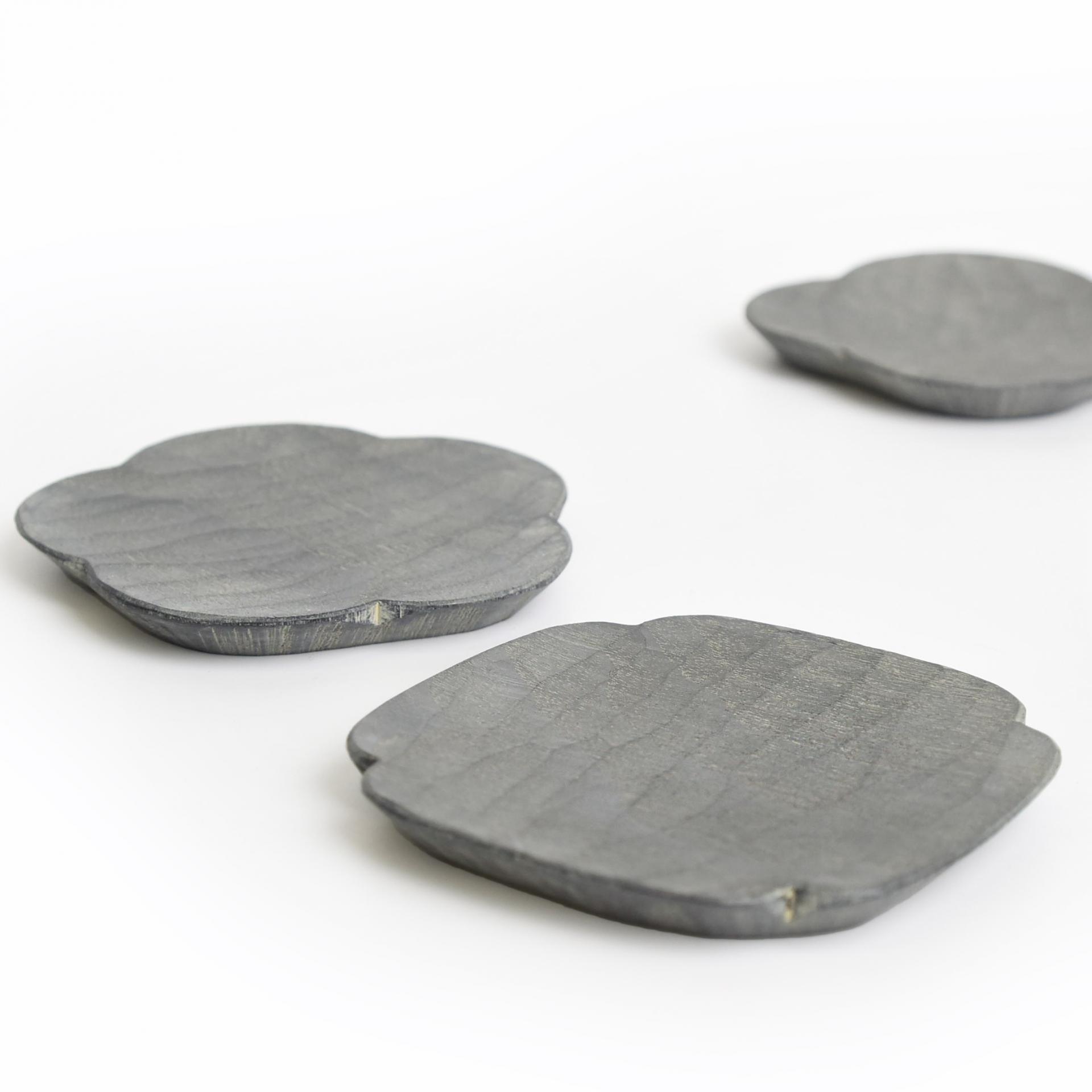 박홍준 작가의 그레이 그레이 우드 카빙 코스터입니다. 원목을 깎아 옻칠로 마무리한 작품입니다.