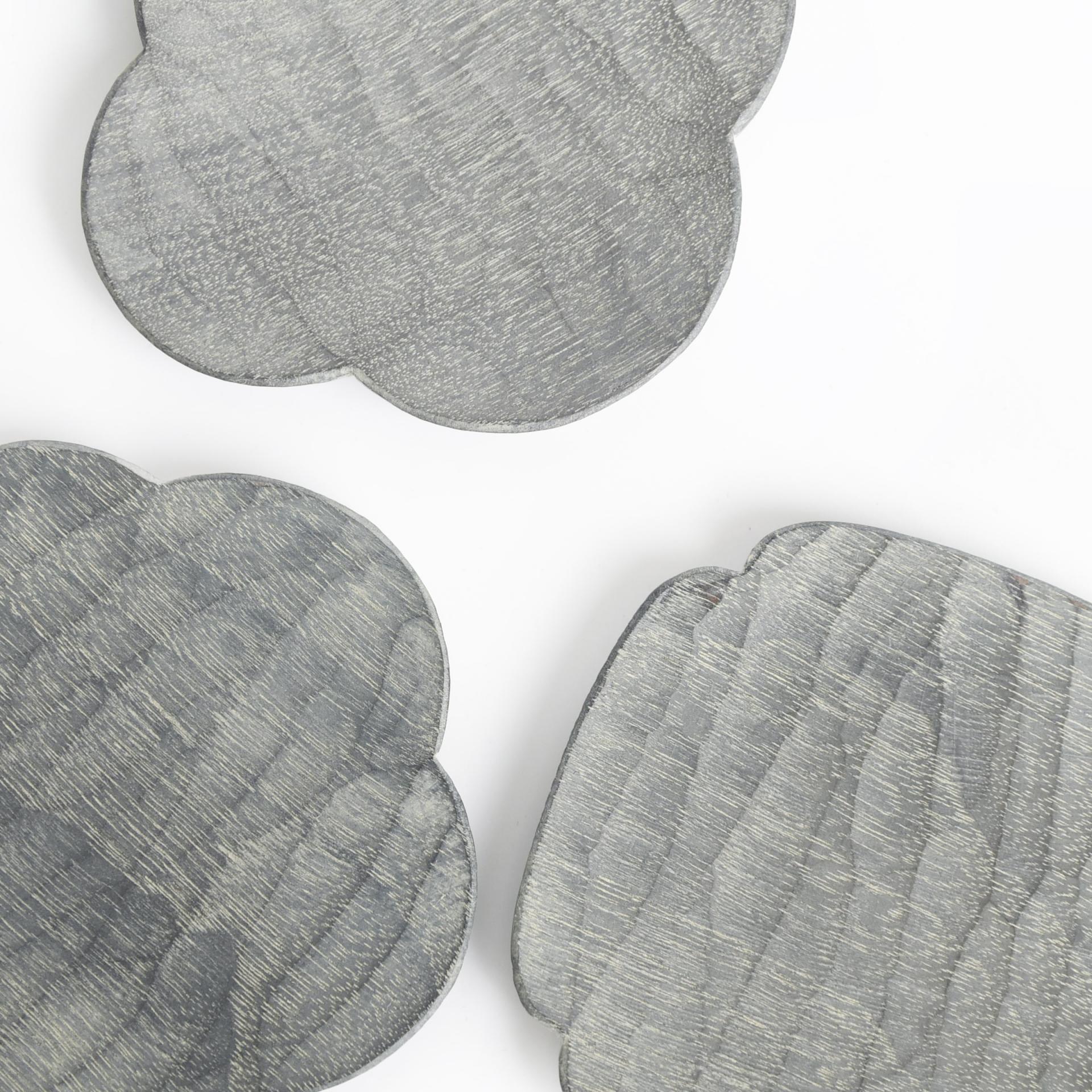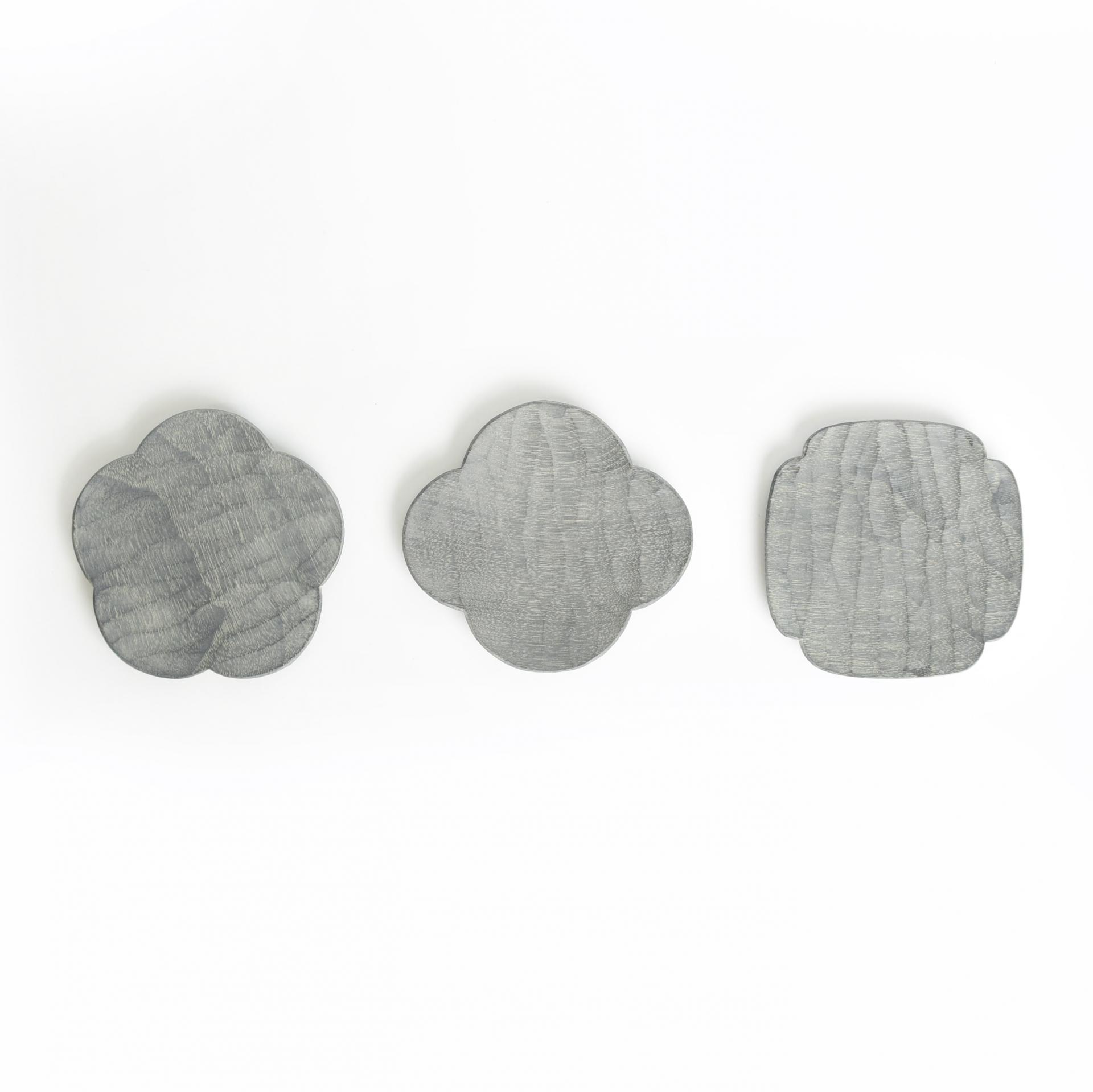 우드카빙 기법을 이용해 트레이 표면의 자연스러운 텍스처가 돋보이는 세 가지 형태의 코스터 입니다.