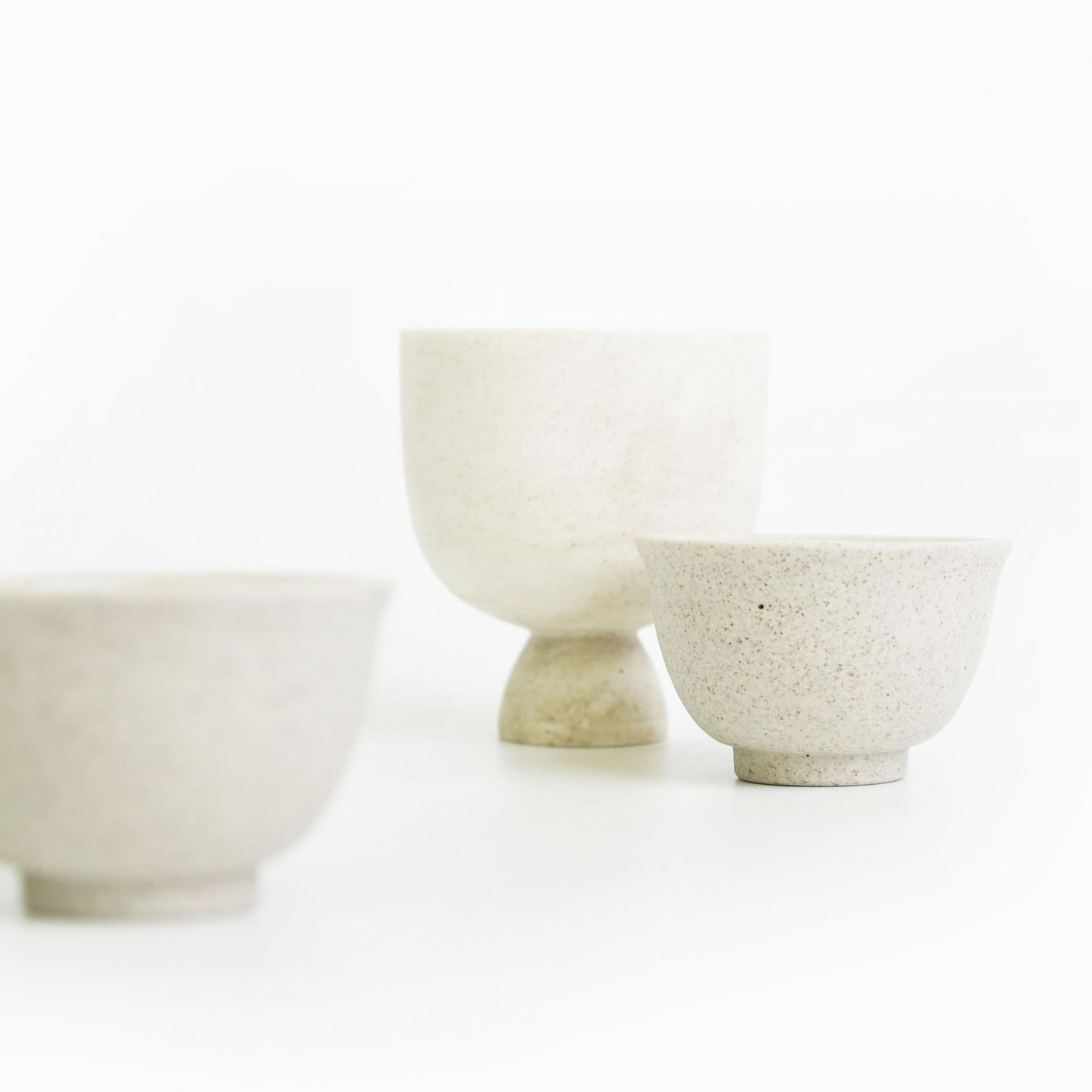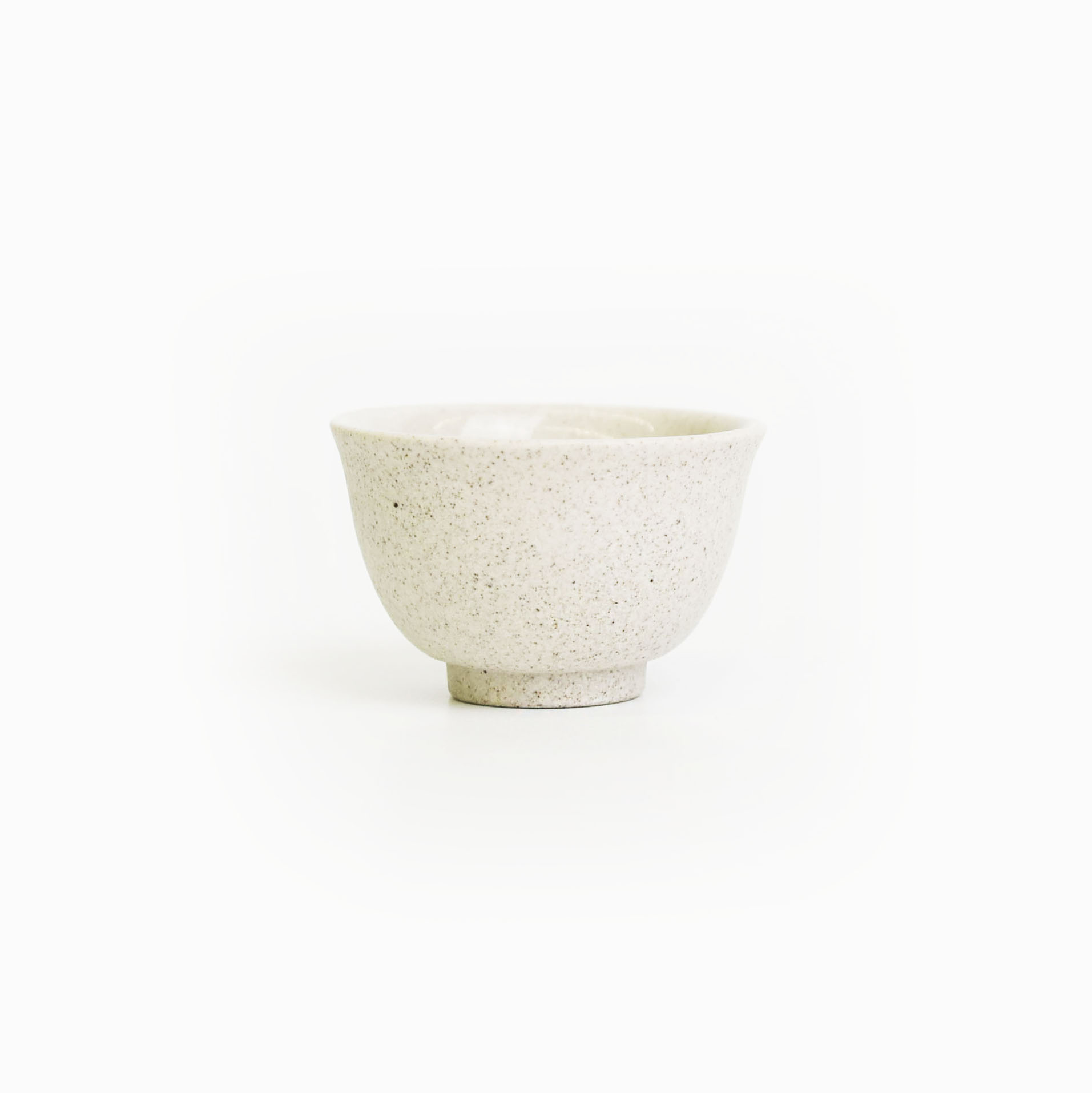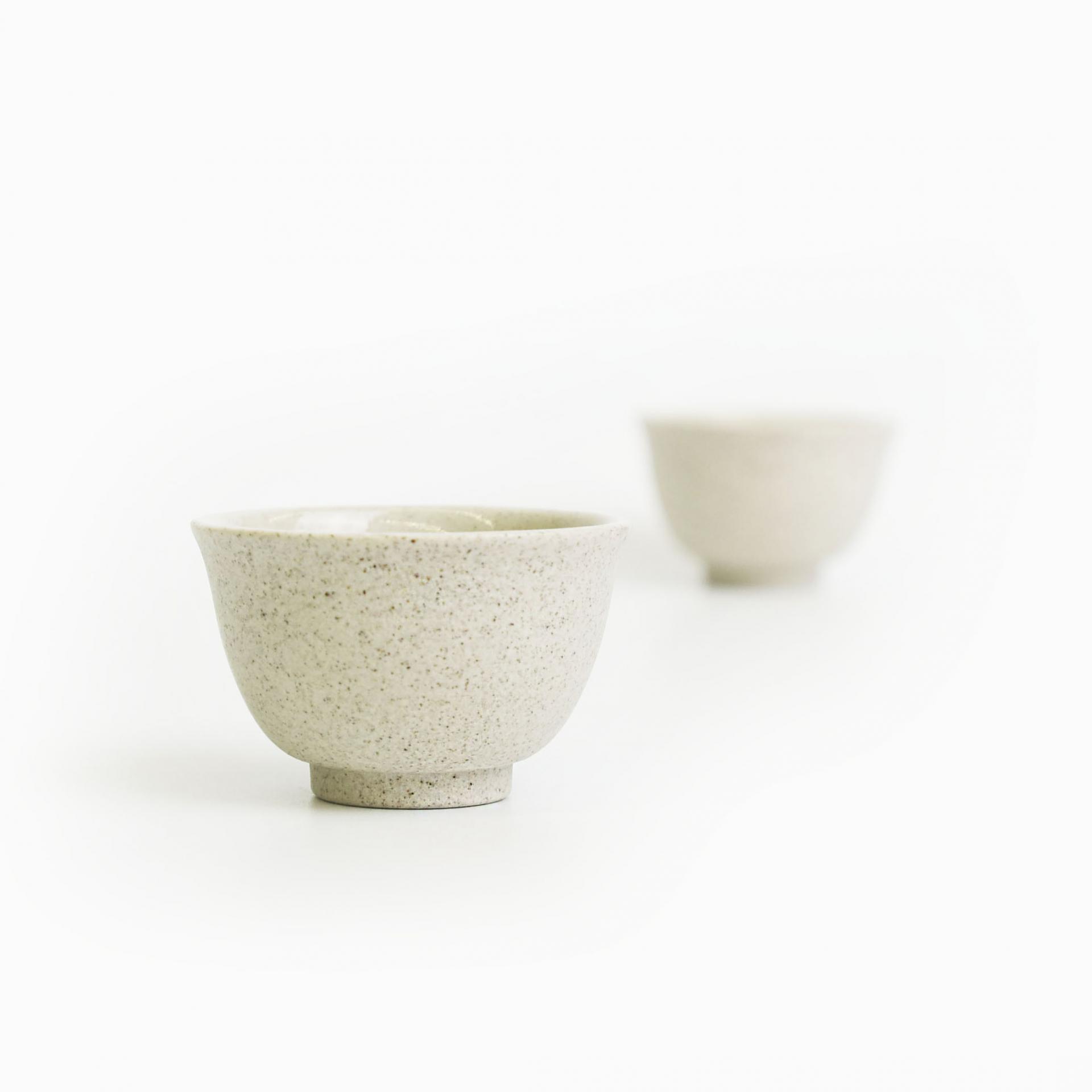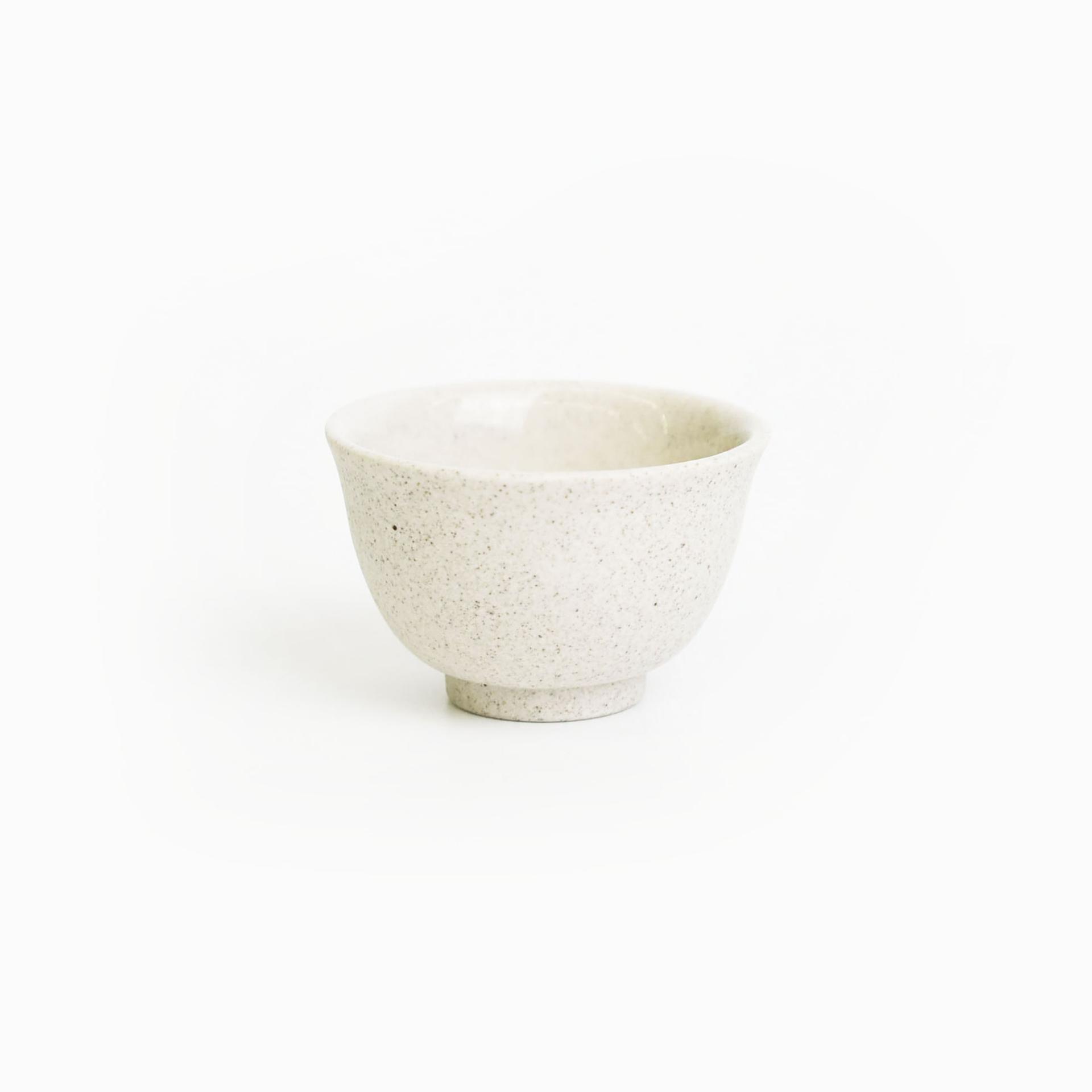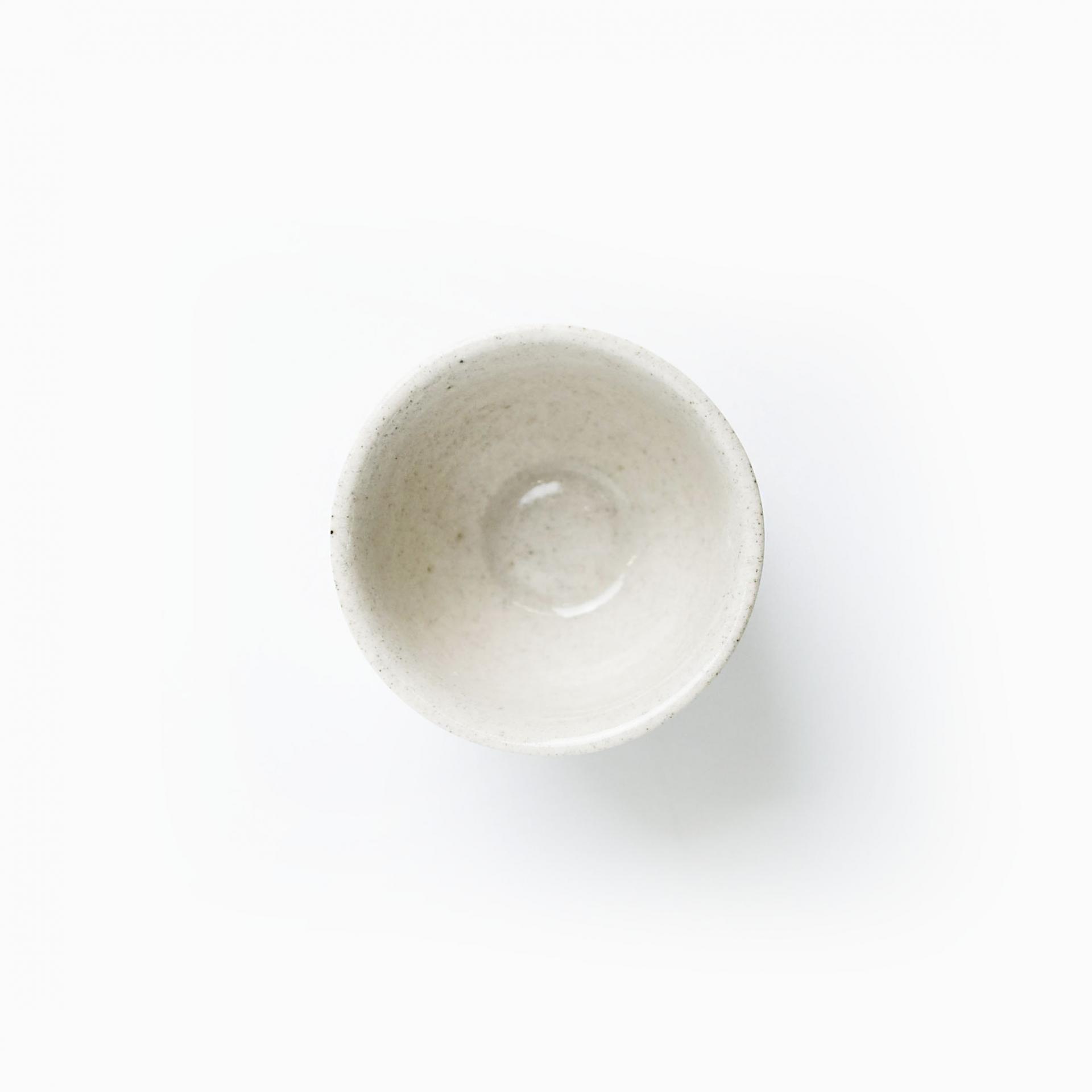 매끄럽고 단아한 백자의 표면과 베이지톤의 거친 화산송이의 질감이 조화롭게 어우러지는 미니잔입니다.