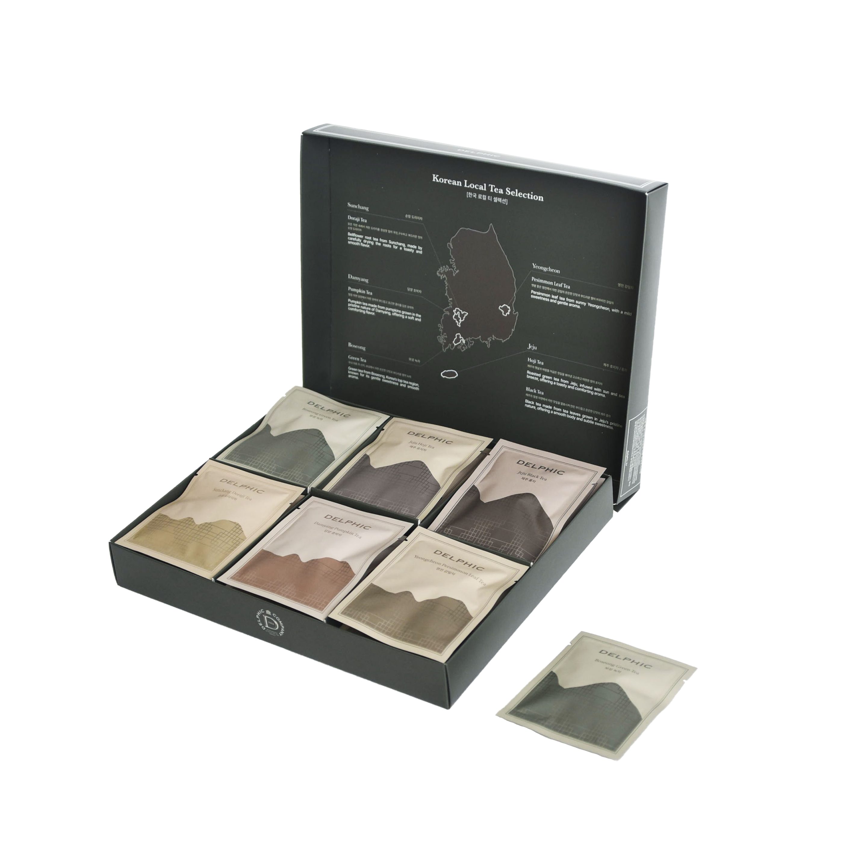 Delphic’s Local Tea Selection features six carefully curated teas from Korea’s most renowned