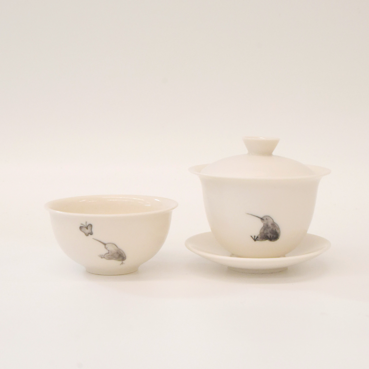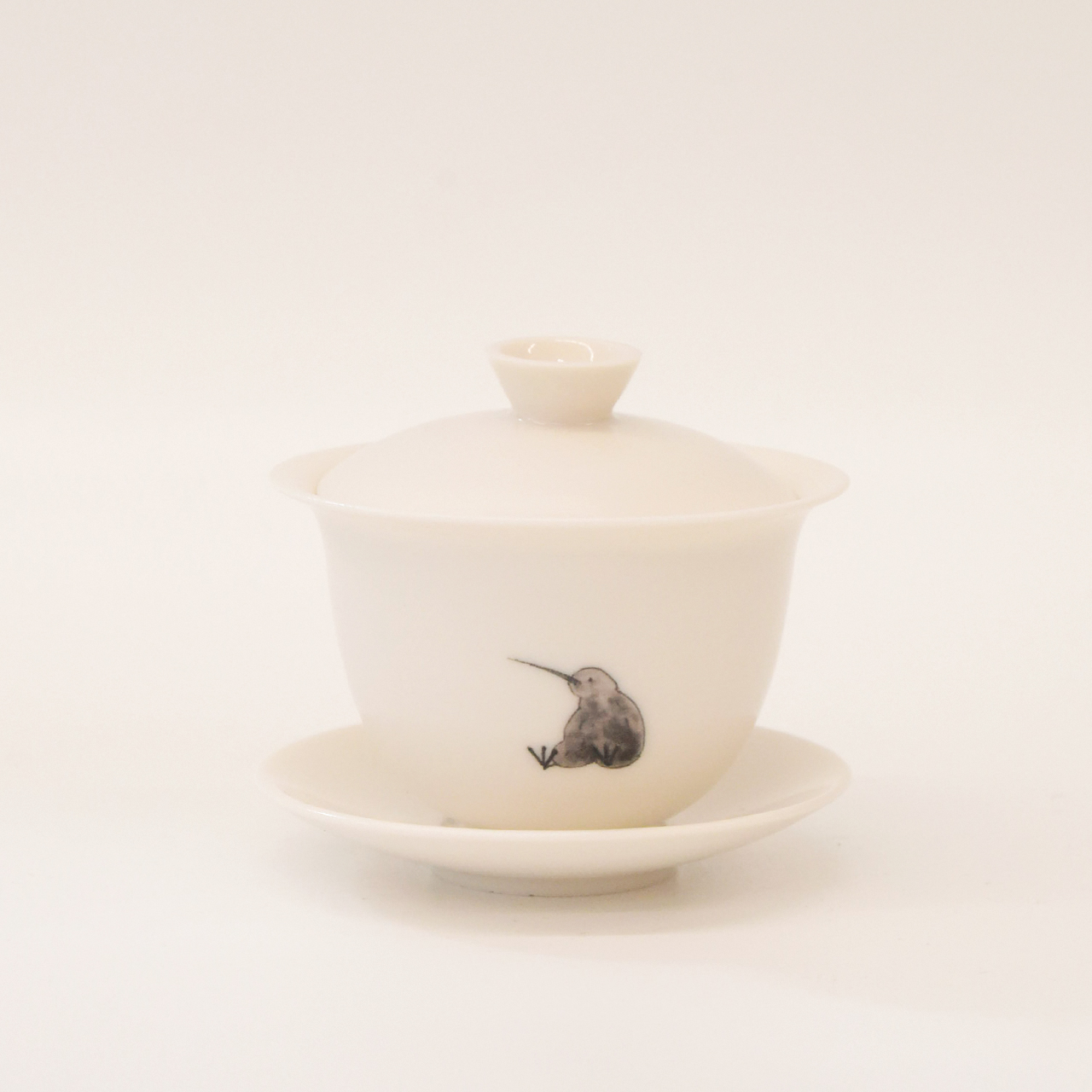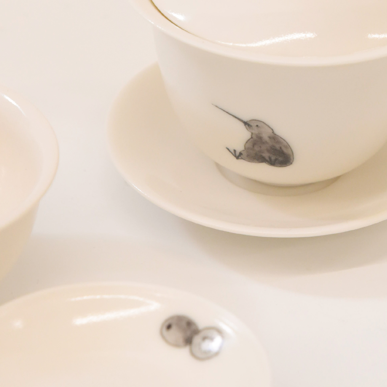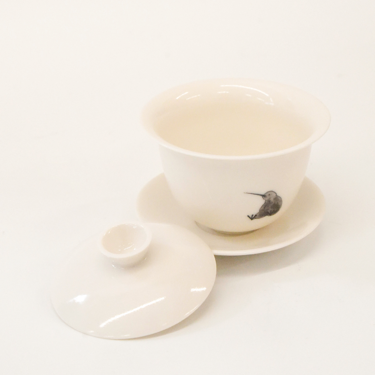 새하얀 백자 위에 귀여운 키위새 한 마리가 살짝 내려앉은 우기원 작가의 키위새 잔입니다.