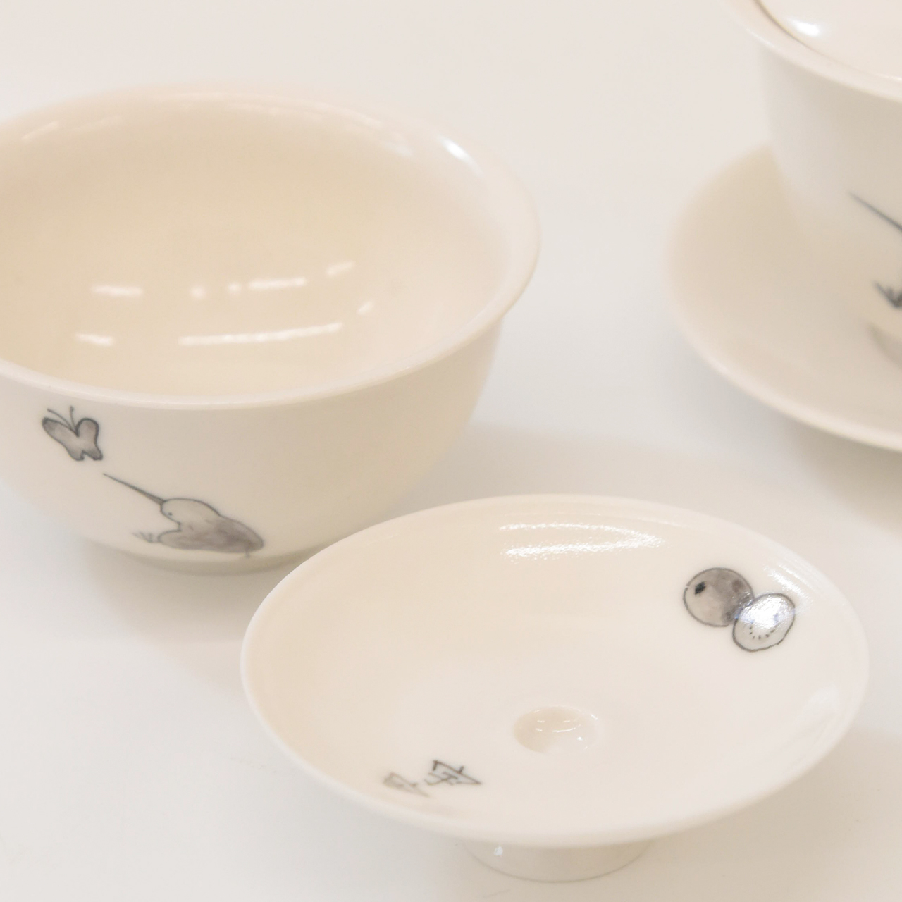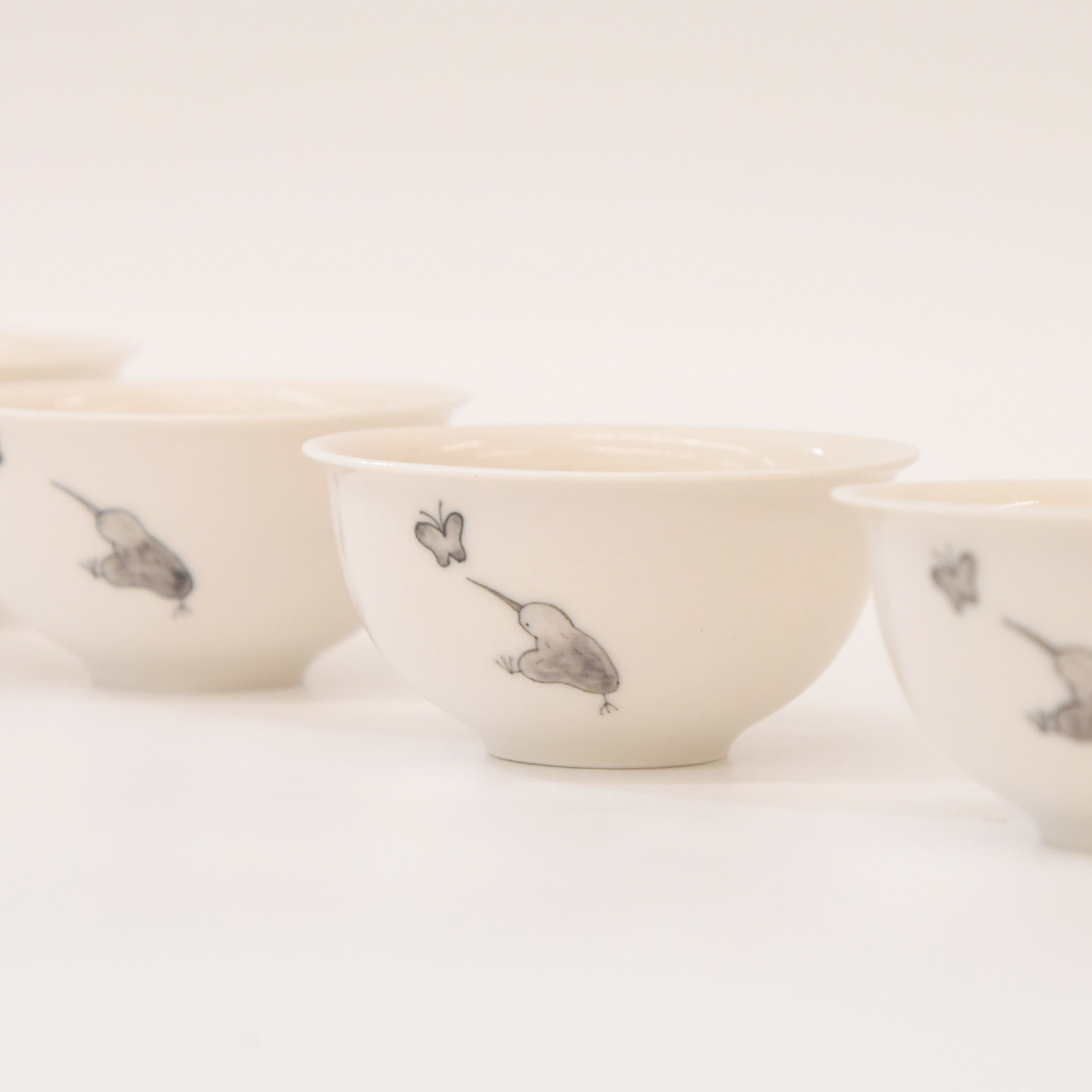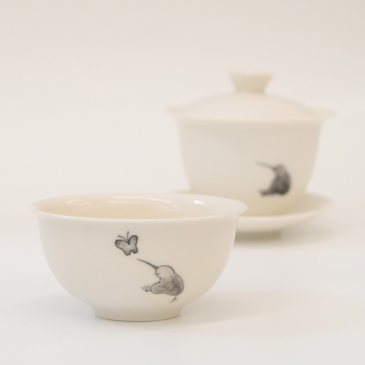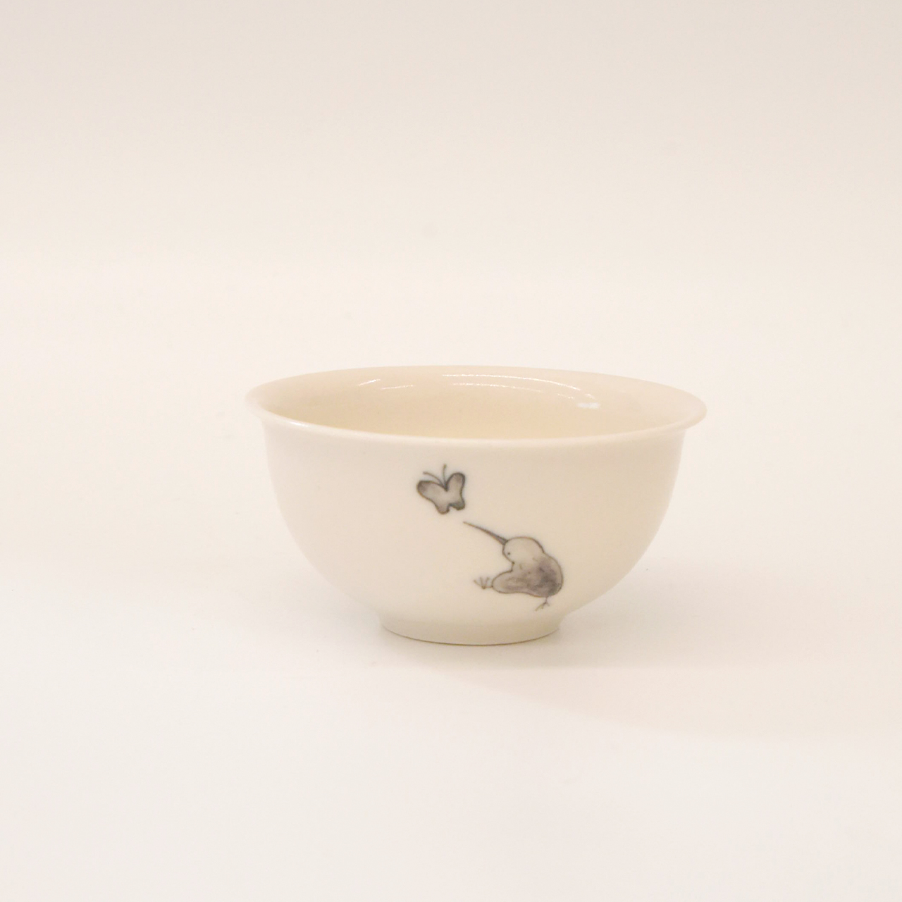 새하얀 백자 위에 귀여운 키위새 한 마리가 살짝 내려앉은 우기원 작가의 키위새 잔입니다.